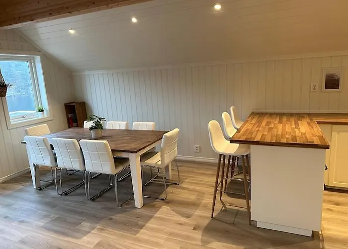 К услугам гостей 3 спальни, оснащённая всем необходимым кухня и 1 ванная комната. За 10 минут можно доехать до Церкви Беккъярвика, а до аэропорта "Сторда, Сорстоккен" за 60 минут.